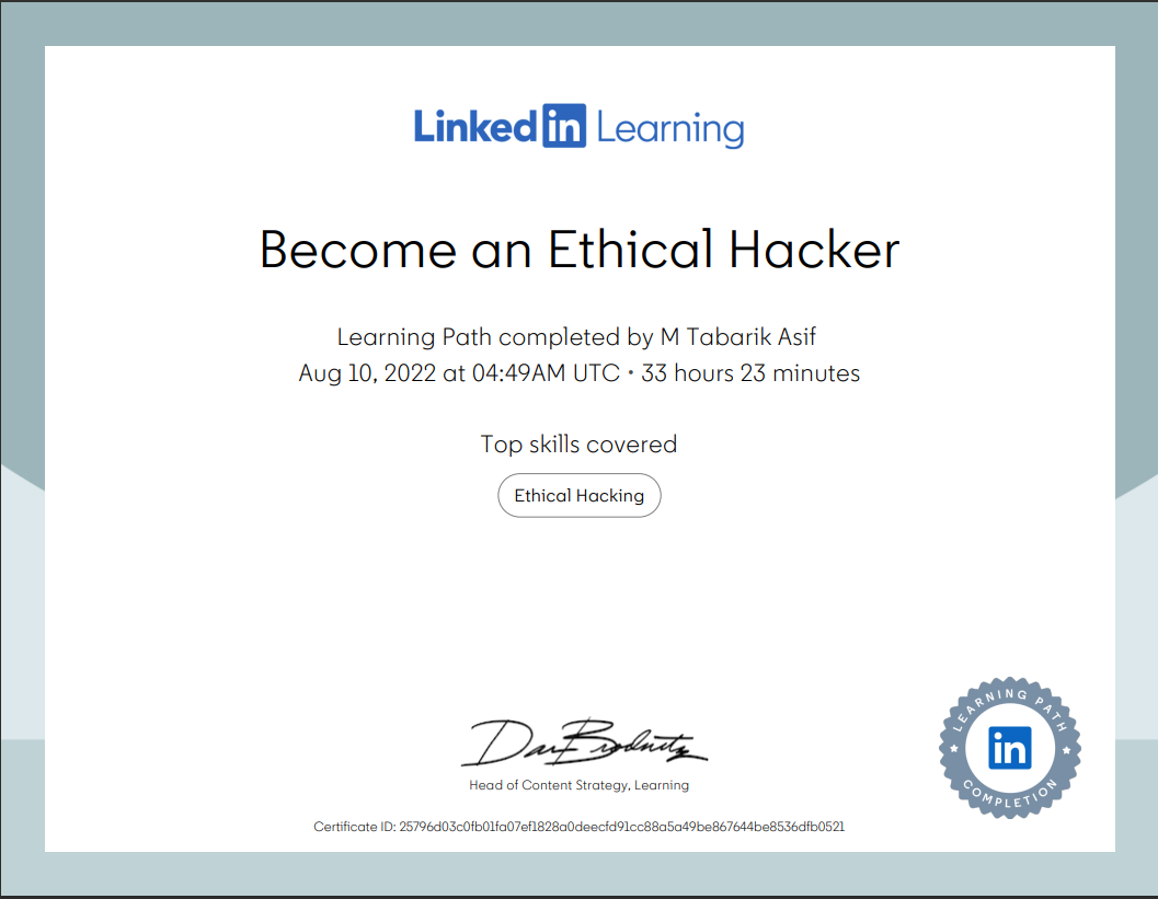 Learning Path completed by M Tabarik Asif